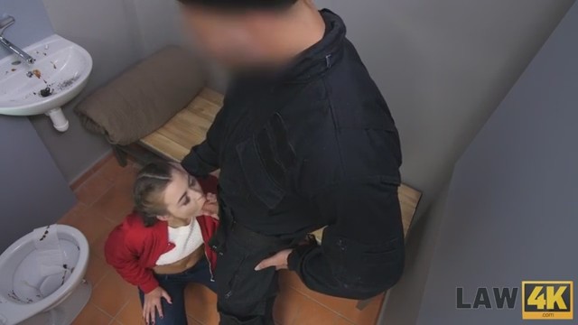 Юная девушка хотела легких денег, но нарко диллерство завело красотку только в тюрьму. Она сидя в камере стала куда нежнее и послушнее чем при задержании и даже встав на коленки отсосала копу прям через решетку. Малышка готова на все ради свободы и одного сочного минета будет маловата. Во время допроса сучке досталось уже два больших стояка, каждый из которых придется обслужить орально, а затем худышка с маленькими сиськами вытянется раком на столе. Ее брутально выебут в МЖМ групповухе, воспользовавшись тугой пилоткой ради наслаждения, а затем с залитым спермой лицом оставят в тюрьме.